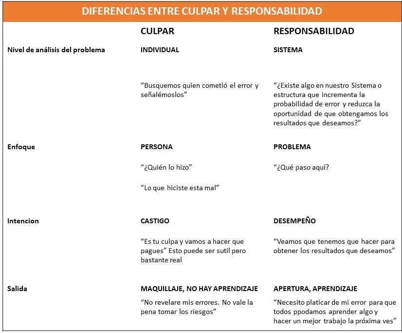 Desarrollar habilidades de rendición de cuentas es un reto; se necesita coraje y la voluntad de aprender nuevas formas de pensar y actuar. Entonces, ¿por qué vale la pena pasar de la culpa a la responsabilidad? Porque la culpa es como el azúcar: produce un impulso breve y luego una decepción. No satisface las necesidades a largo plazo del sistema y, de hecho, puede evitar que funcione de manera efectiva. Por otro lado, desarrollar habilidades y hábitos de rendición de cuentas en todos los niveles de su organización puede ser un elemento importante para mantener la salud a largo plazo de su organización.